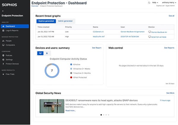 Sophos Intercept X protects more than 300,000 organizations against advanced cyberthreats with multiple layers of security including its malware detection engine and advanced anti-ransomware and anti-exploit technology. In March 2023, Sophos expanded Intercept X with Adaptive Active Adversary Protection, a core part of Sophos’ “shields up” design methodology, that immediately enables heightened defenses when detecting a “hands-on-keyboard” endpoint intrusion, disrupting and containing attacks by minimizing the attack surface and providing insight for complete threat remediation. Also new are a health check overview with a one-click “fix automatically” option that fixes security misconfigurations and policy settings and an integrated zero trust network access agent for Windows and macOS devices.