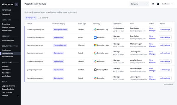 While inbound email security remains top of mind for most organizations, attackers are increasingly targeting cloud email platforms by exploiting misconfigurations across integrated apps, privileged users and mail tenants. Security teams struggle to get a centralized view of risky configurations across their cloud email environment, leading to gaps in visibility and time-consuming manual efforts to address those risks. Email Security Posture Management from Abnormal improves the risk posture of the entire cloud email environment by helping security teams understand and take action on configuration gaps and drifts—including privilege escalations, new third-party app integrations and conditional access policy exceptions.