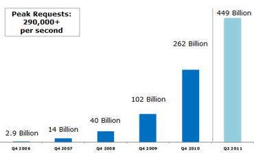 "As of the end of the second quarter of 2011, Amazon S3 holds more than 449 billion objects and processes up to 290,000 requests per second for them at peak times," Amazon cloud evangelist Jeff Barr wrote in a short blog post containing a chart detailing Amazon S3's rapid growth.