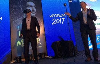 Gelsinger joined Bruce Davie, VMware's Asia-Pacific-Japan CTO, onstage at a vForum 2017 event in Mumbai, India, this week to demonstrate app migration to VMware Cloud on AWS, and pictures of the CEO gesturing in a VR headset quickly hit Twitter. "Best demo ever," Gelsinger tweeted. "Coolest thing I've ever done on stage," tweeted Davie.