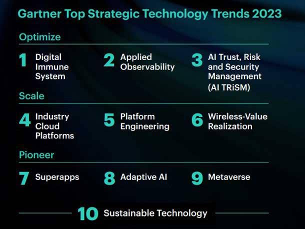 Here are Gartner’s top 10 technology trends for 2023: