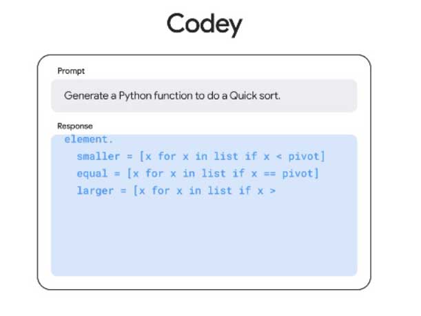 Codey is Google’s new text-to-code foundation model. It can be embedded in an SDK or application to help improve developer velocity with code generation and code completion, and to improve code quality. Codey accelerates software development with real-time code completion and generation, customizable to a customer’s own codebase.