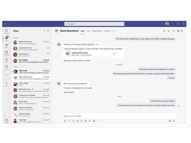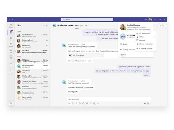 The mention @everyone feature notifies all users in a group so that users don’t have to enter each individual’s name. And the zero-state people recommendations feature will suggest people to start chats with based on previous collaborations, according to Microsoft.