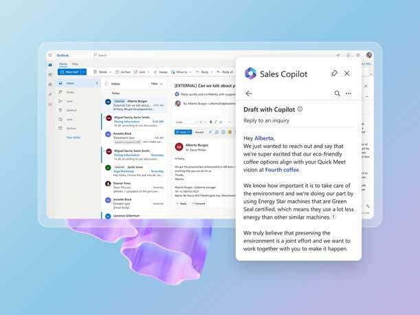 In Outlook, copilot can provide an email thread summary with actionable steps, agenda drafts, discussion summaries, adding more clarity to the original thread and suggesting meeting times, among other actions.