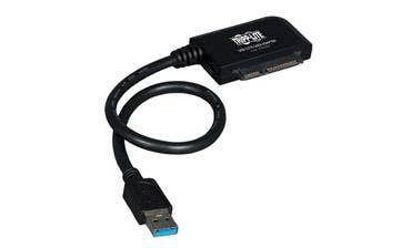 Helping to keep back-room staff ahead of the curve is Tripp Lite, which earlier this month began shipping a trio of must-have devices aimed at making connections at the highest possible speed. Most immediately useful gadget to us in the CRN Test Center was the U338 USB SuperSpeed to SATA Adapter, a cable-like device that attaches any size SATA I, II or III drive to a USB 3.0 (or earlier) port.
