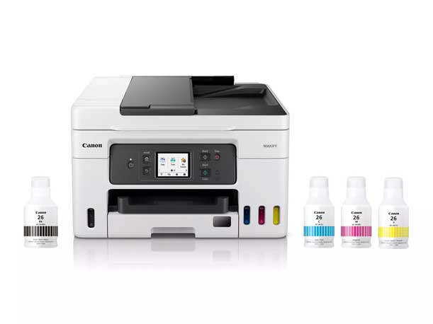 With the ability to print, copy, scan and fax, the multifunction printer uses a continuous ink supply system, which Canon said can “significantly reduce ink costs” by using its high-volume MegaTank ink bottles.