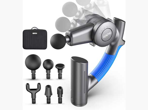 Consider the Renpho R4 deep tissue massage gun. The device has an adjustable arm, four speed levels and five angles for the adjustable head.