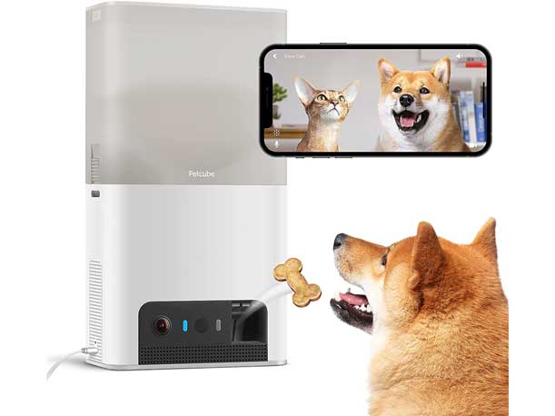 The treat dispenser container holds 1.5 pounds of treats. The device also has 24-hour online vet chat for consulting veterinarians through the phone app.