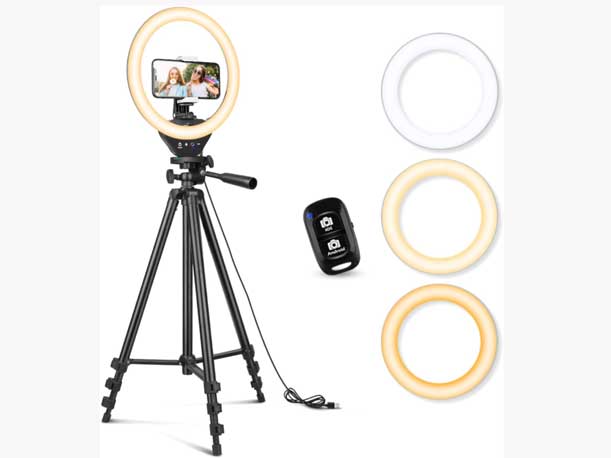 The Sensyne 10-inch ring light has a touch panel design, three color modes and 10 brightness levels, according to an online listing.