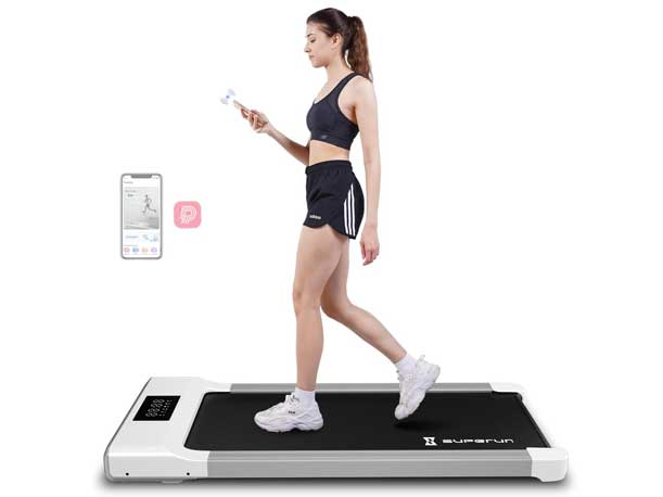 Consider the SupeRun under desk treadmill and walking pad. The alloy steel treadmill bills its 2.5 horsepower motor as quiet but powerful, according to a listing. It holds a maximum load of 300 pounds and has a 39.4 by 15.4 inch running area. The treadmill itself is about 46 pounds.