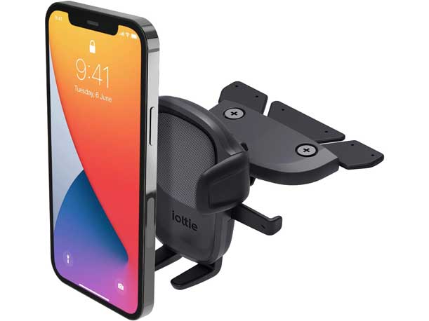 iOttie’s CD slot mount fits phones and cases between 2.3 inches and 3.5 inches in width, according to an online listing.
