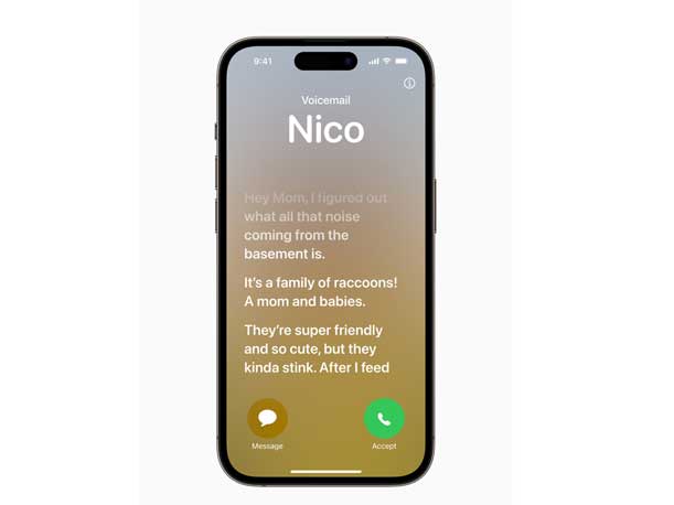 Live voicemail uses the Apple Neural Engine, with transcriptions on device and private.