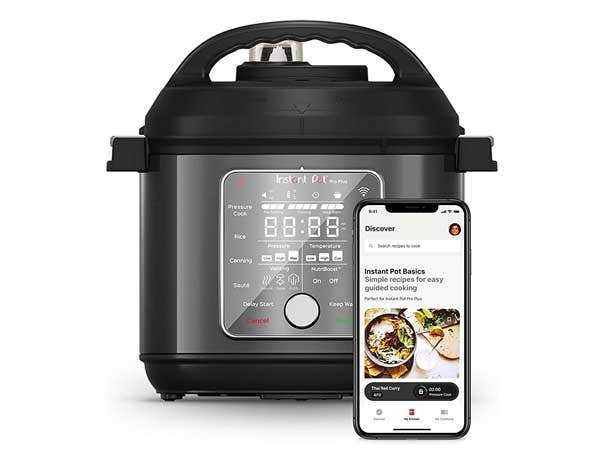 Deemed one of the best instant pots of 2023 by Better Homes & Gardens, the Instant Pot Pro Plus 6.5 quart multi-use electric pressure cooker allows for wireless operation through the Instant Brands Connect application.