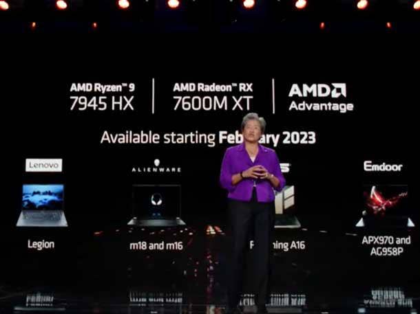 Laptops featuring the Ryzen 7945HX and Radeon 7600 MXT will be available starting in February, with more gaming notebooks coming later this year, including some new AMD Advantage notebooks, Su said.