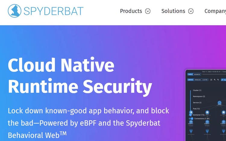 Spyderbat offers cloud native runtime security, monitoring all containerized application events and offering immediate security and operational controls.