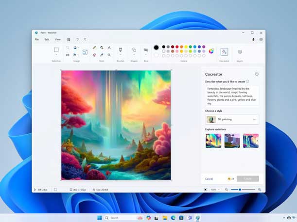 Microsoft’s long-running Paint app was was remastered with AI as well. It will now include the ability to remove background objects, and comes with a preview version of Cocreator that Microsoft says brings generative AI to the drawing program once widely-associated with blocky pixel part. Paint also now has layers, which was introduced in Adobe Photoshop 3.0 in 1994.