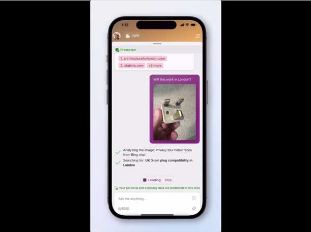“Now you can also search with images and create images in Bing chat enterprise with multimodal visual search and image creator,” Kumar said. “I grabbed a power converter before I left for the airport but I’m not sure it’s the kind that works in the UK. Fortunately, I can simply take a picture of the one I packed and ask if this will work in London. Bing uses GTP-4 and its image recognition capabilities to understand both the question and how it relates to the image to get the answer.”