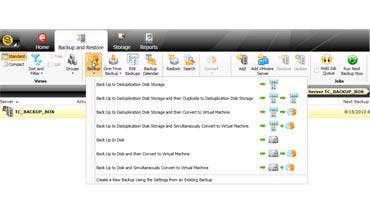 Creating and restoring backups doesn't get much easier than with Backup Exec 2012. This powerful point-and-click environment introduced last year provides automated off-premise backup and recovery of physical and virtual systems running Linux, Mac OS X and Windows. To create a backup set, simply select a type, source, destination and frequency/schedule. A "Test Run" button confirms the job will run properly. Color-coded status bars indicate the health of running jobs.