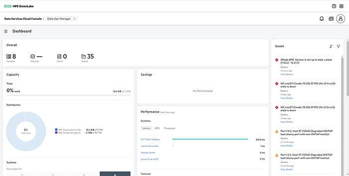 All of the storage hardware configuration for capacity and performance is controlled and managed with the HPE GreenLake storage console.
