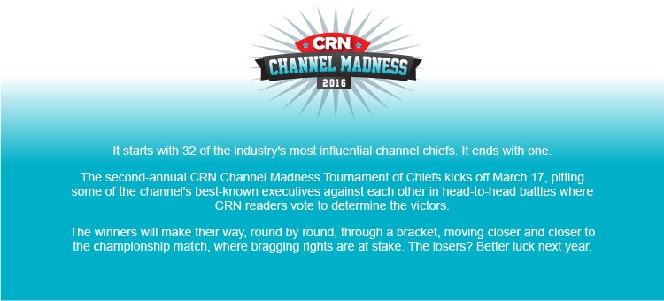 CRN's second annual Channel Madness Tournament of Chiefs begins with 32 of the industry's most influential channel executives and ends with one. Prepare to choose your chief.