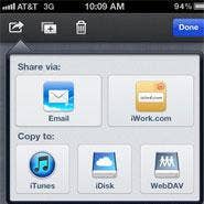* iWork apps, iCloud and iWorkbeta.com don’t follow standard use patterns for sharing documents from mobile devices. Apple needs to include a “share” and “save” icon in each document, rather than making you leave the document, go to a dashboard, and fumble around until you figure out how to do it from outside the document.