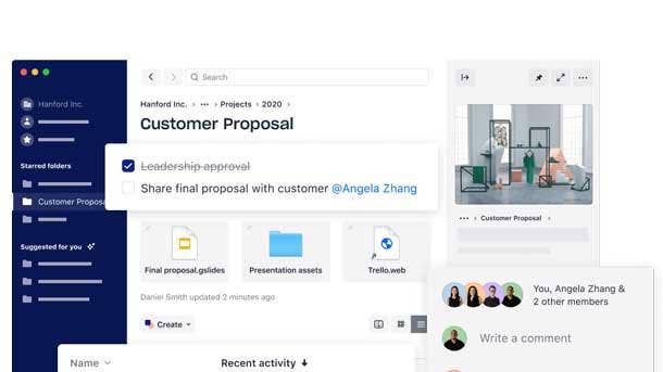 Dropbox Business offers a "smart workspace" that can serve as a central hub for team content (including from Google Docs and Microsoft Office, along with traditional files) as well as team collaboration over any mobile device. Features include added intelligence around suggested files and folders.