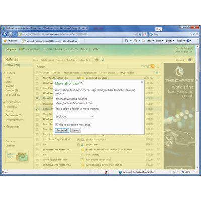 The new "Sweep" feature in the Windows Live Hotmail update lets users get rid of unwanted messages from specific senders in one fell swoop without having to select each one in the inbox. With the ’virtual broom,’ users can avoid creating rules around messaging and easily select all messages from a single sender to be swept into a certain folder or deleted. Incoming messages can also be swept automatically so they never reach the inbox. Hotmail also offers the ability to sweep Gmail and Yahoo Mail Plus inboxes.