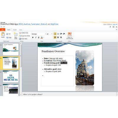 Documents also can be attached in an e-mail and stored to SkyDrive, which lets users access it from anywhere. Documents can be edited and SkyDrive will track and store older versions of documents so users can go back to previous edits.