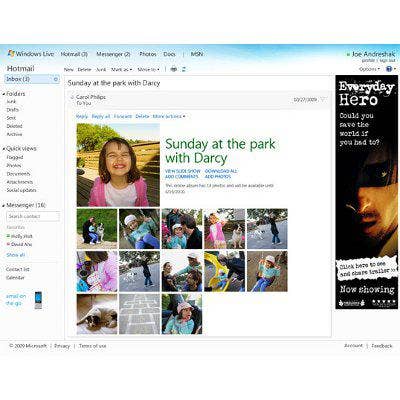The new Hotmail also automatically shows previews of photo attachments and lets users view them as a slide show without leaving the inbox.