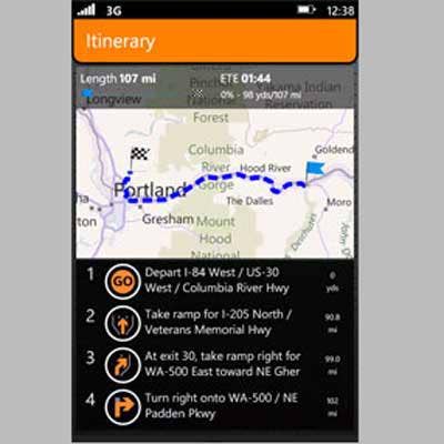 Turn by Turn Navigation for Windows Phone 7.5 speaks directions to the driver and accepts input by touching points of interest on a map after an address search. A data connection is required.