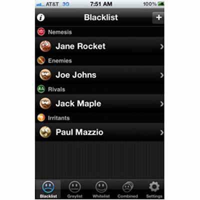 Mark Schumann's My Blacklist lets you rate people according to negative or positive interactions. Based on grades, the app either places people into a Blacklist, Greylist or Whitelist. This one's on our whitelist.