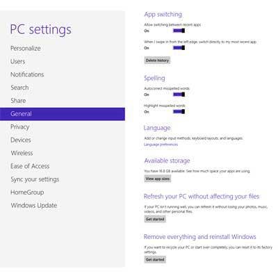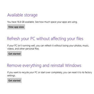 Sometimes it's just better to wipe everything out and start over. Right below the Reset button in the PC Settings control panel is a button that will "Remove everything and reinstall Windows." This is equivalent to a factory reset, and it will erase all user data and restore the machine to its original pristine state. IT departments will love this feature when setting up recycled machines for new users, taking machines out of use or donating them to charity. The reset and refresh features have been with us in the pre-release versions but never worked well in our tests.