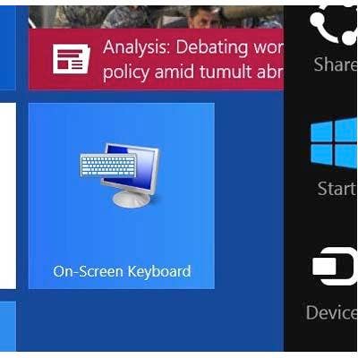 Launching an app from the Start screen by typing its name is great for people with a keyboard, but for tablet users there's no way to begin typing until the on-screen keyboard is visible. A good way around having to make a trip to the desktop is to create a tile for the on-screen keyboard. By the way, the Start screen is known as the Modern UI; Microsoft has discontinued use of the "Metro" nomenclature, which it says was only a code name.
