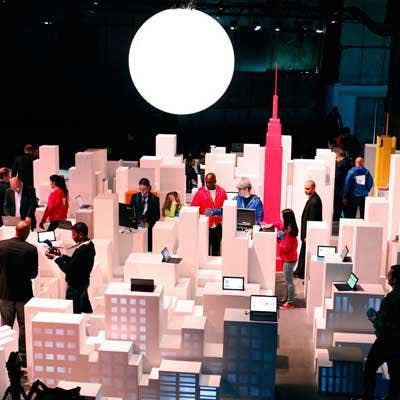 The Windows 8 launch event venue included this recreation of New York City -- dubbed "Microtropolis" -- with laptop and tablet computers running Windows 8 and Windows RT scattered about. Attendees were encouraged to walk among the buildings and try out the devices.