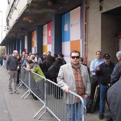 The big event was held in Pier 57, a cavernous, warehouse-like building on the Hudson River on Manhattan's West Side. Hundreds of journalists from around the world turned out to cover the Windows launch. They began lining up outside the entrance nearly two hours before Microsoft opened the doors to the venue at 10:00 a.m.