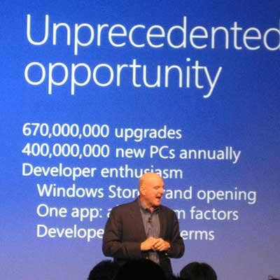 Ballmer said the launch of Windows 8 and Windows RT would provide a boost for Microsoft and its channel partners -- as well as for the PC industry overall. The CEO cited analyst forecasts that 400 million new PCs will be sold in 2013 -- most with Windows 8.