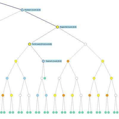 The new release also provides a library of prebuilt, parallelized versions of common statistical and predictive analytical algorithms that are within the Hortonworks and Cloudera Hadoop platforms and Teradata database. That allows data scientists to build predictive models, such as the regression tree (shown), inside Hadoop or Teradata databases without the need to move big data files to a separate server. RRE 7 is also now integrated with Alteryx strategic analytics software.