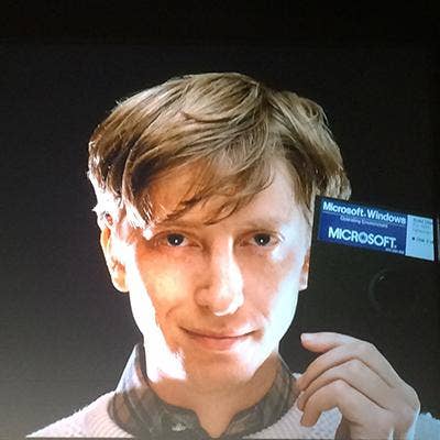 Bill Gates wasn't at the event, but a funny photo of a much younger Gates flashed on screen during the event prior to the big reveal.
