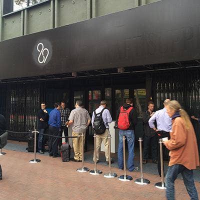 This is the line of media members waiting to get into the Windows 10 event. From first glance, you'd be forgiven for wondering if this was a tech event.