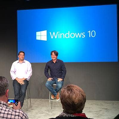 Joe Belfiore, corporate vice president of Microsoft's Operating Systems group (right), had the best analogy of the day. While Windows 7 and Windows 8 are like driving a Prius, Windows 10 is more like driving a Tesla, he said.