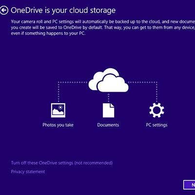 Taking another queue from Apple, Microsoft during the installation of Windows 10 alerts the installer that some data on the target system will be automatically backed up to the user's free OneDrive account, and that any new documents will be saved there by default. As with prior versions, files also can be saved locally by enabling offline files in the Sync Center Control Panel.