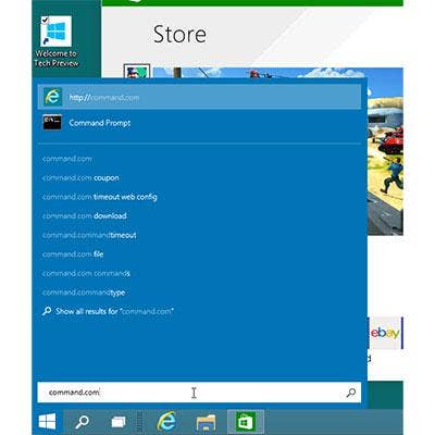 Web-based results (found by Bing) are shown at the top and, if clicked, are displayed using Internet Explorer (version 11 was included in the build we tested) or the default browser, if different. By the way, selecting the top choice after a search for "command" brought us to "command.com," a 3M company that makes wall hangers.