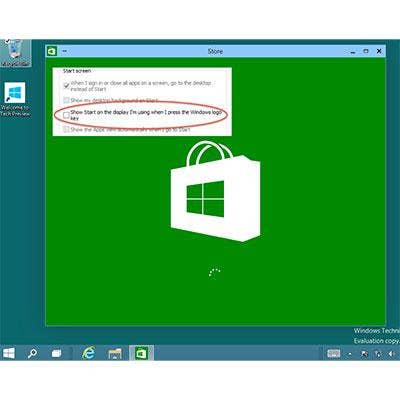 On Windows 10 systems that disable the Start Screen, Metro-style apps will launch in a window like the one shown. In full-screen mode, these apps will retain their title bar. The Start Screen can be toggled manually in the Taskbar and Start Menu Properties Control Panel (inset) or activated when entering Tablet Mode.