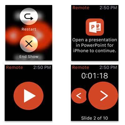 Another nifty app is Microsoft's PowerPoint for iOS with support for Apple Watch. This app allows users to use their Apple Watch (or iOS device) as a PowerPoint remote. With the app, users can drive presentations from the wrist. The app allows them to navigate through slides and supports transitions, trigger and other advanced PowerPoint features.
