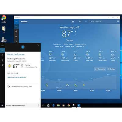 Cortana is basically Microsoft's version of Apple's Siri with a sprinkle of Google Now thrown in. With Cortana, users can make appointments with Windows 10's Calendar app, set Reminders, create Notes and Alarms or play music stored locally on a PC -- all using voice commands. Using the phrase "Hey, Cortana," users can summon the digital assistant and ask it to hunt down directions from Point A to Point B on a map. Cortana also can perform a host of Bing searches, such as "What's the weather for today?" and "Who were Chris Pratt's parents?"