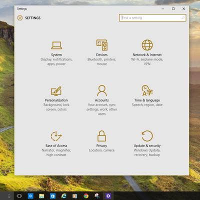 With Windows 10, Microsoft unifies Settings into one streamlined place. The new Settings hub is very finger-friendly, creating nine Settings subcategories to drill down into. Settings are available via two clicks directly from the Start Menu and also from the Action Center.