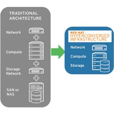 Red Hat recently introduced what it's calling the first open-source hyper-converged infrastructure software stack. Red Hat Hype-Cconverged Infrastructure combines four of the company's technologies into an integrated offering targeting cloud deployments. The components are Red Hat Virtualization, the company's hypervisor based on open-source KVM technology; Gluster storage, Red Hat's scale-out file system based on the GlusterFS project; the Red Hat Enterprise Linux, or RHEL, operating system; and Red Hat's IT automation platform, Ansible. The Red Hat Hyper-Converged Infrastructure software stack targets customers looking to simplify their data center infrastructures, the company said.