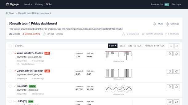 BigEye’s data observability platform, including its Autometrics, Autothresholds and Integrations products, monitors the quality of data as it flows between systems, helping data management teams identify and fix data quality problems and maintain data integrity.