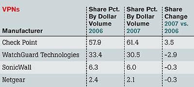 WatchGuard in 2007 had "tremendous growth," said Mark Romano, director of global channel marketing. However, its VPN sales through distribution saw the biggest drop of any of the vendors in the segment. These figures could have been skewed somewhat by WatchGuard's larger growth outside the U.S., during the period between 2006 and 2007, said Romano. In addition,WatchGuard in 2007 made a concerted effort to promote and price its Firebox UTM line more aggressively, which may have affected distributors' reporting model, he said. [READ MORE]
