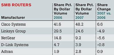 Cisco Systems' big SMB push seems to be paying off. The company devoted much of 2007 to revamping its Integrated Services Routers and launched a new Select certification for channel partners that cater to the SMB market. Both solution providers and customers seemed to notice.